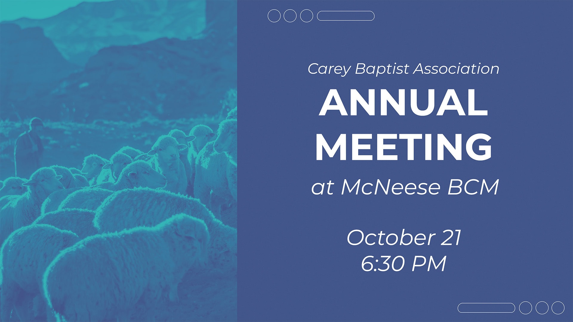Join us for this year’s Annual Meeting on Tuesday, October 21, at the McNeese BCM. We encourage every church to send their pastor and elected messengers for this important time of worship, fellowship, and celebration of what God is doing across our Association.